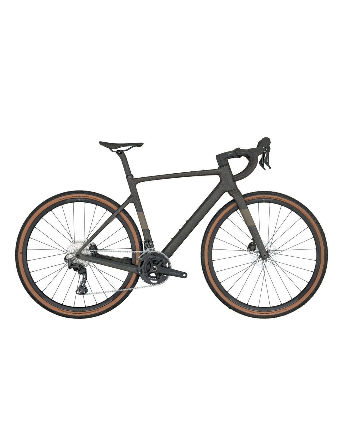 Les pneus Schwalbe G-One Bite en 700x45C sont le choix idéal pour ce vélo : leur profil cramponné assure une accroche latérale phénoménale sur terrain meuble, tout en conservant un roulement fluide et silencieux sur le bitume.