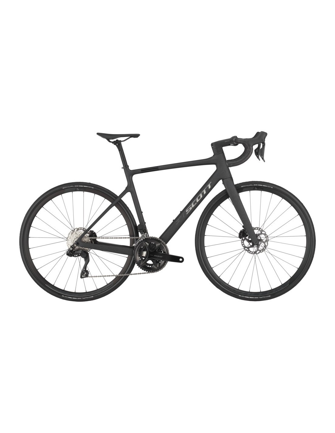 Le vélo est monté sur des roues Syncros RP2.0 Disc, réputées pour leur robustesse. Pour maximiser le confort sur les routes granuleuses, SCOTT a choisi des pneus Schwalbe ONE en section de 32 mm. Ce volume d'air supplémentaire permet de rouler avec une pression plus basse, augmentant radicalement l'adhérence et le confort sans sacrifier le rendement. La tige de selle en carbone Syncros Duncan 1.0 vient parfaire l'ensemble en ajoutant une flexibilité bienvenue pour filtrer les aspérités de la route.