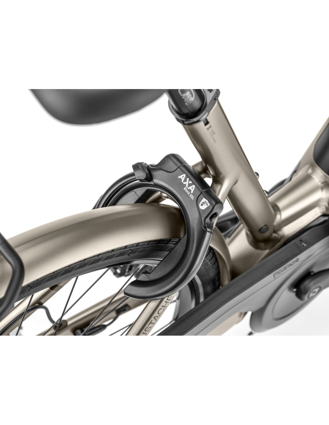 Sécurité intégrée : L'antivol de cadre AXA Block XXL immobilise votre roue arrière instantanément pour vos arrêts minute.