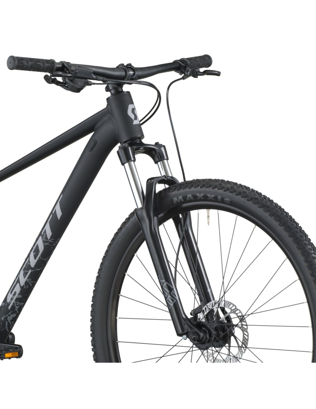 • Suspension Suntour : 100 mm de débattement pour absorber les irrégularités du terrain.